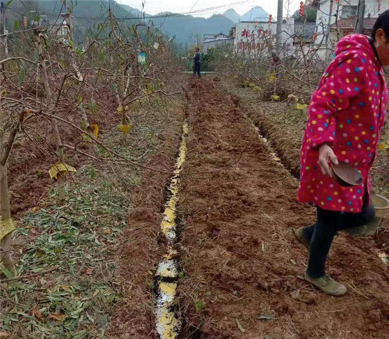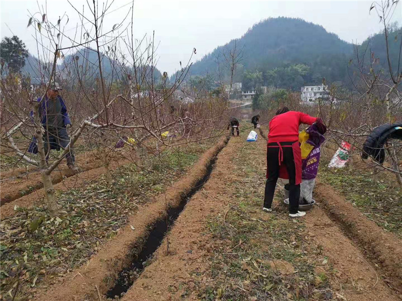 2019年11月9日,湖北建始富硒黃桃基地開始春前施肥作業(yè)。
